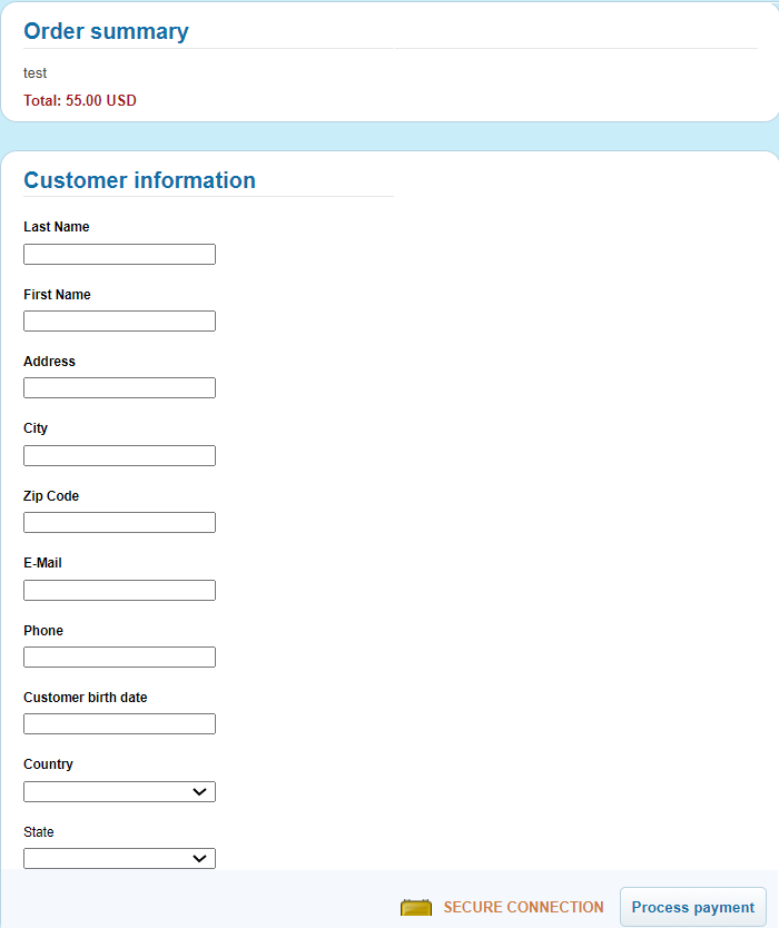 Buy Now Button integration is relevant for Connecting Party who has limited portfolio of products to sell. It is the easiest way to integrate with Payment Soft. This way of integration doesn’t require much technical effort. Buy Now Button integration also allows Connecting Party to exclude itself from storing, processing, or transmitting Payer’s cardholder data or other sensitive payment details. Such data is submitted by Payer on Payment Soft hosted customer details form and payment form in PCI DSS certified environment.